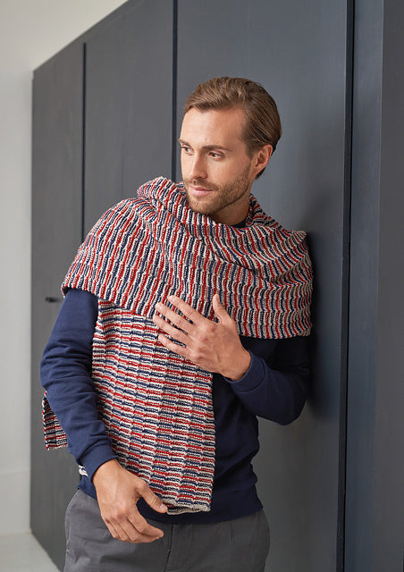 Completed scarf is 47.5 cm (18¾ in) wide and 220 cm (86½ in) long.