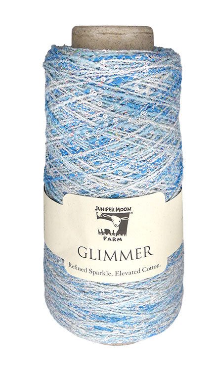 Glimmer was created for crafters who appreciate subtlety as much as radiance. A soft cotton blend forms its foundation, while delicate paillettes and fine metallic accents catch the light like quiet stars. Used on its own, Glimmer whispers with subtle shine and elegant texture. Held alongside another yarn, it transforms adding depth, dimension, and a refined glow. Designed to elevate without overwhelming, Glimmer brings intention to every stitch, turning simple projects into something quietly luminous and undeniably special. Shine softly. Craft boldly. Always Glimmer!