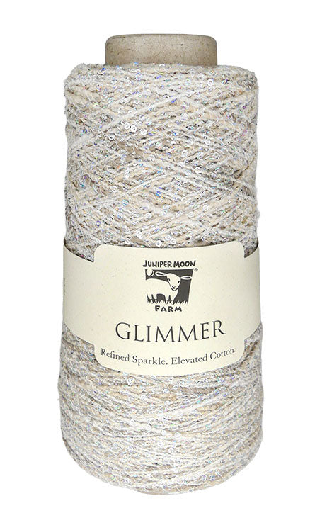 Glimmer was created for crafters who appreciate subtlety as much as radiance. A soft cotton blend forms its foundation, while delicate paillettes and fine metallic accents catch the light like quiet stars. Used on its own, Glimmer whispers with subtle shine and elegant texture. Held alongside another yarn, it transforms adding depth, dimension, and a refined glow. Designed to elevate without overwhelming, Glimmer brings intention to every stitch, turning simple projects into something quietly luminous and undeniably special. Shine softly. Craft boldly. Always Glimmer!