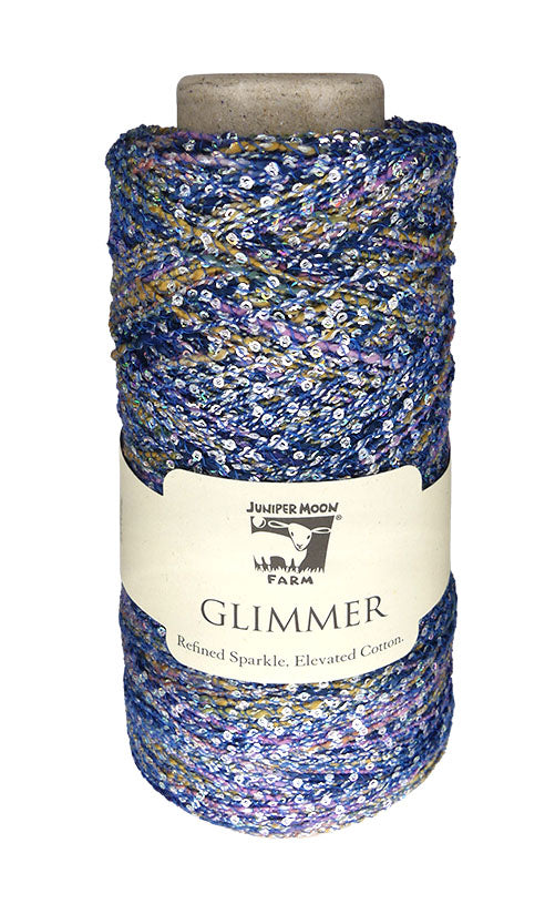 Glimmer was created for crafters who appreciate subtlety as much as radiance. A soft cotton blend forms its foundation, while delicate paillettes and fine metallic accents catch the light like quiet stars. Used on its own, Glimmer whispers with subtle shine and elegant texture. Held alongside another yarn, it transforms adding depth, dimension, and a refined glow. Designed to elevate without overwhelming, Glimmer brings intention to every stitch, turning simple projects into something quietly luminous and undeniably special. Shine softly. Craft boldly. Always Glimmer!
