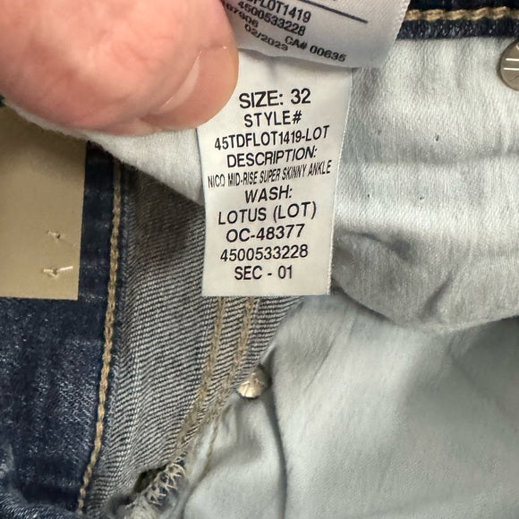 NWT HUDSON Womens Nico Mid-Rise Skinny Leg Ankle Jean Size: 32 MSRP: $195.00