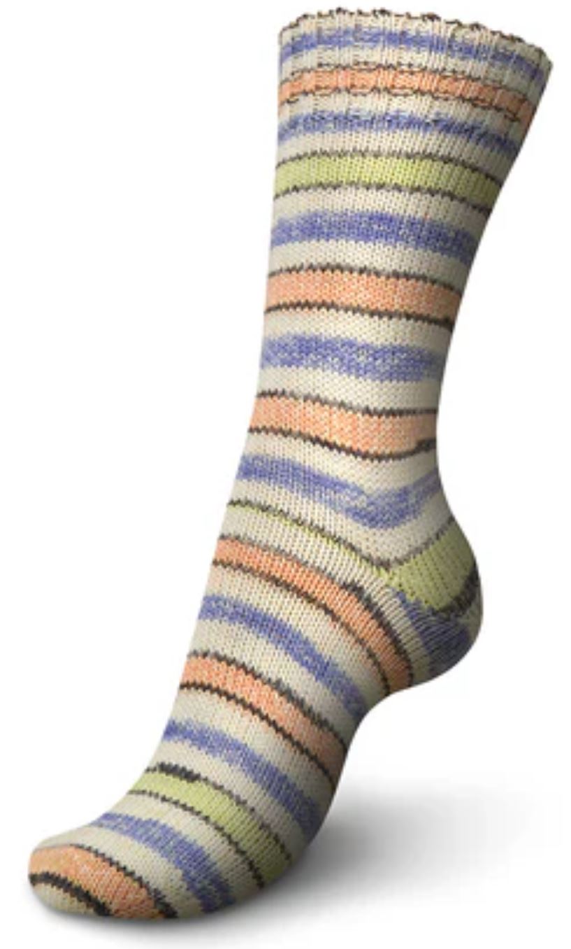 A limited edition Regia yarn line, Electric Neon works up with delicate striped pattern spiced up perfectly with neon colors bookended with black accents. Fun color combinations makes the Electric Neon yarn the perfect Regia line for year-round wear.