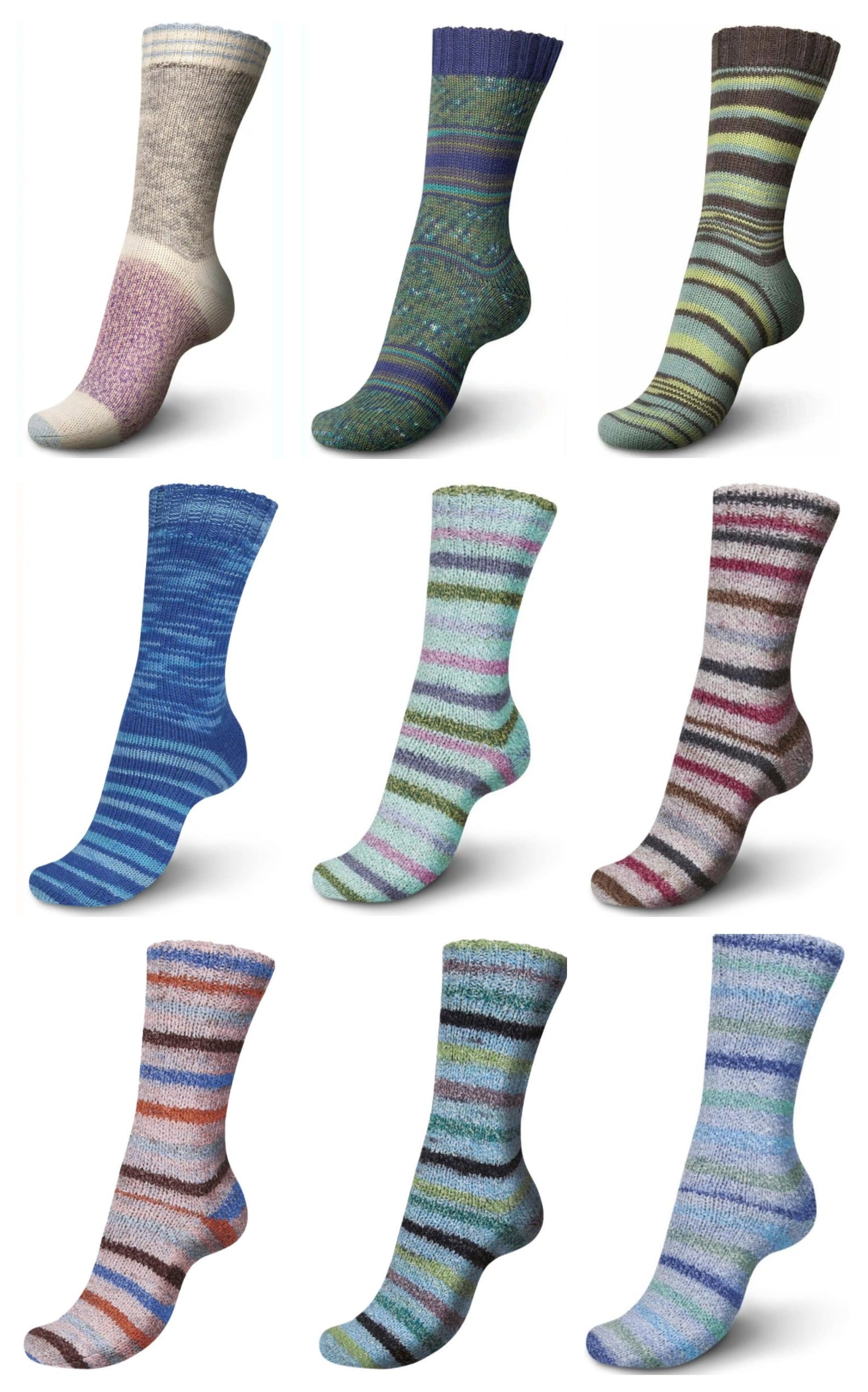 Price is for 5 skeins of Regia Pairfect and 5 skeins of Regia Energy Flow. Each bag will have 10 different colors with no color repeats. PHOTO IS A SAMPLE; BAGS WILL HAVE DIFFERENT COLOR COMBINATIONS.