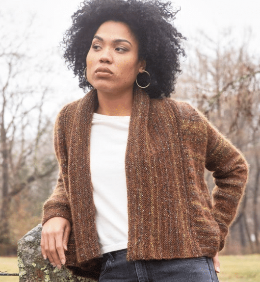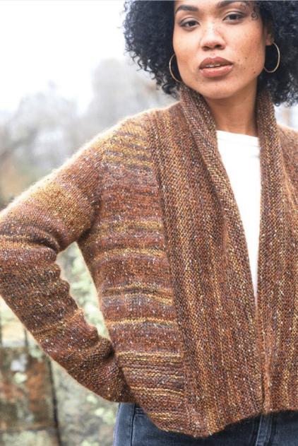 Spencer is that classic, reach for it cardigan. Using both Berroco Sesame and Berroco Aerial held together it has the softest touch which will make you want to keep making excuses to wear it every day.